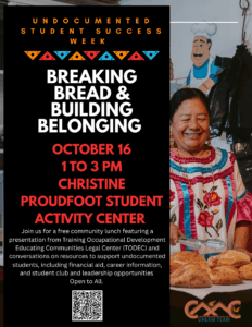 Join us for a free community lunch featuring a presentation from Training Occupational Development Educating Communities Legal Center (TODEC) and conversations on resources to support undocumented students, including financial aid, career information, and student club and leadership opportunities.