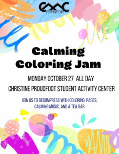 Join us to decompress with coloring pages, calming music, and a tea bar.