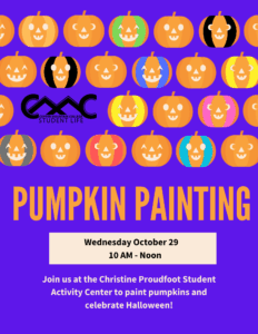 Join is at the Christine Proudfoot Student Activity Center to paint pumpkins and celebrate Halloween!