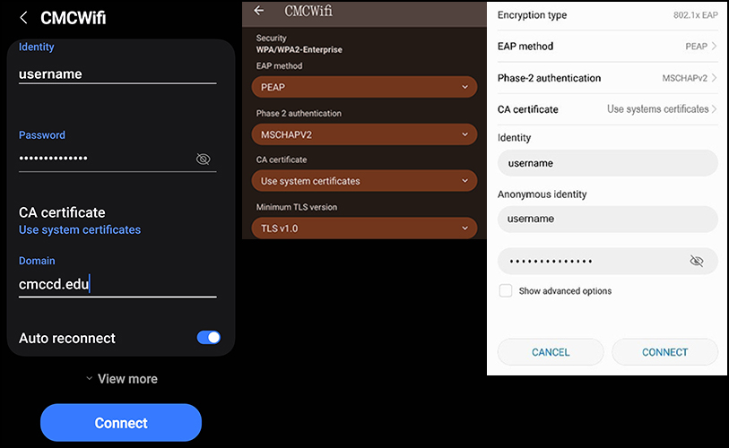 Connect to Campus "CMCWifi"